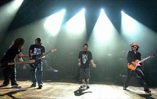Then a couple of years later, just when I thought it was all over Renato called me up again. The album had been selling really well, especially in Brazil, so he ws wanting to do a gig or two with all the guests involved. It sounded like a great but crazy idea. All these musicians have their own bands touring and recording schedules, but somehow Renato did it. In November 2005 we all met up in São Paulo for some gigs to be recorded for DVD release. There was Renato, Bruce, Roland Grapow from Helloween, Roy Z, Ralph and Mat from Primal Fear, Andreas Kisser from Sepultura, Kiko Lauriero from Angra, Renato's new band and me getting ready to rock together! |