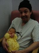 Sunday 14th May 2006 Dawn and me (well, mainly Dawn) had a little baby boy today. He's called Archie. He's amazing. So cute and so small. He came out all confused, blinking his eyes and looking up at us.... he's a great little chap! I feel so happy, like a kind of weird happiness I never felt before. Now that was what all the goats, carrots and plums talk was about the other week, although I guess they were metaphorical goats as I didn't see any real ones around, just as well really. Goats are well meaning chaps- bit thick- but they just don't know when to stop eating. |