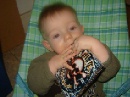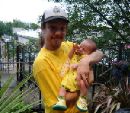 Monday 15th May 2006 Day 2 and Archie decides to become a bassist with his little big hands (or maybe a goalie, though he's got small feet). Of course he can't really say much yet (he's just practising vowels first) but I could see that look in his eye saying "I'm gonna be a very groovy little bass boy". Then again he showed particularly poor musical taste today by puking all down my Kiss T-shirt. They do say babies can't focus very well at first so maybe he couldn't read the logo and mistook it for another band. It was quite small Kiss Logo, must remember to only wear shirts with big Kiss logos in future... |