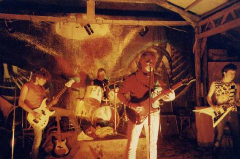 Mach 4 live in concert up a mountain in Wales 1986 L-R Chris Dale, Alastair Upton, Dave Hobbs, Matt Jones