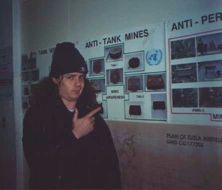 ...wisely taking heed of some landmine warnings. Bosnia 1994