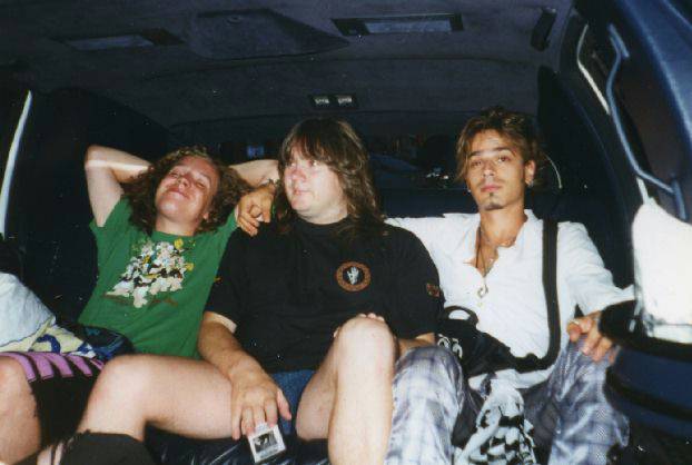...with guitar tech Bomber and Sponder in a Limo. Skunkworks tour, Detroit 1996