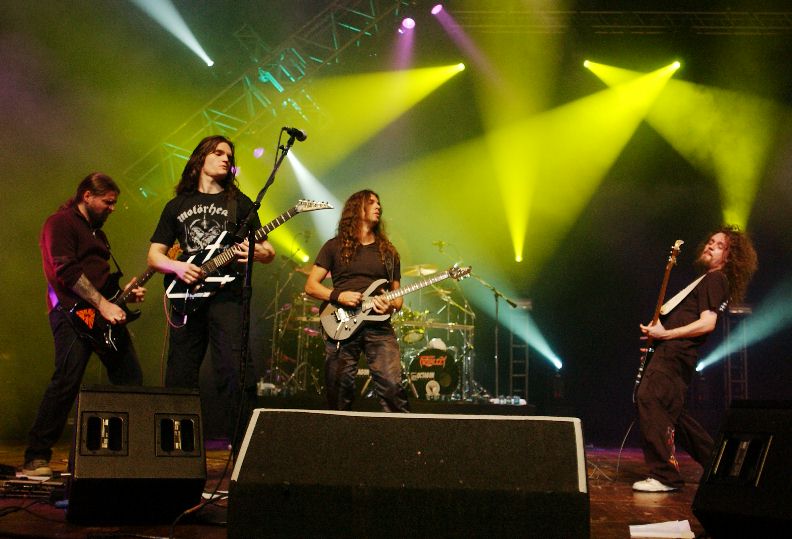 Andreas Kisser, Frank Schieber, Kiko Louriero and Chris Dale onstage with Tribuzy