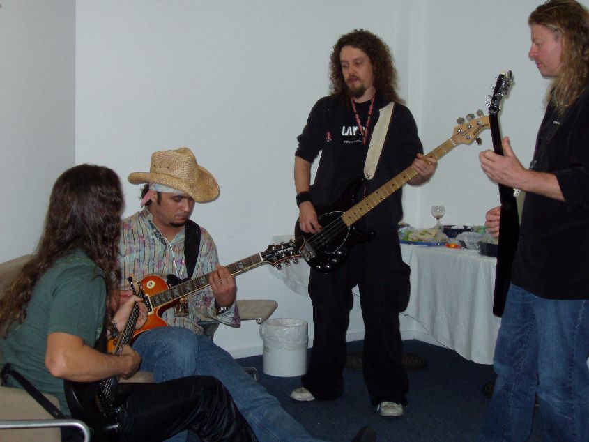 Kiko Louriero, Roy Z, Chris Dale and Roland Grapow jamming backstage.