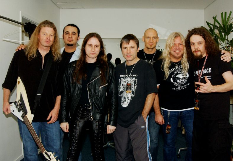 From Left to Right- Roland Grapow, Roy Z, Renato Tribuzy, Bruce Dickinson, Ralf Scheepers, Mat Sinner and Chris Dale