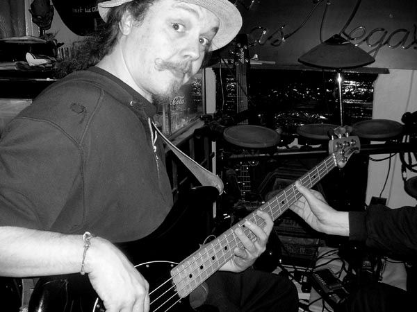 ...recording guide bass parts on the Twin Zero album, thanks to Roo for holding the extra note!